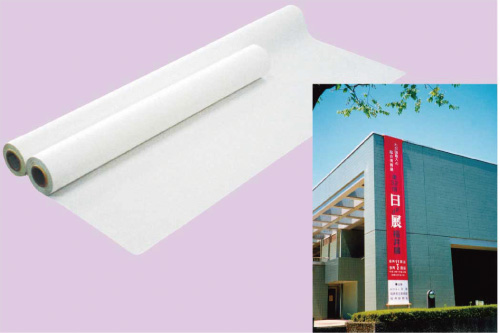 国内すべてのプリンターで印刷可能で、印刷後、特別な加工を施すことなくそのまま屋内外で宣伝広告の旗や垂れ幕として使用できる樹脂加工織物。一定期間、屋内外で使用されるため、雨風などによる色落ちや耐久性の課題を、当社が保有する繊維加工技術により解決しました。水系樹脂コーティング技術を駆使し、品質と環境を両立したモノづくりに取り組んでいます。