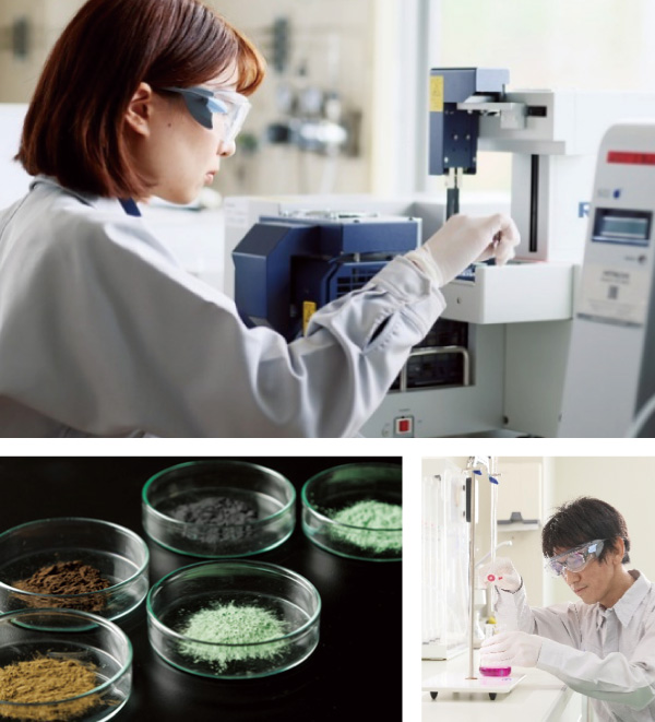 当社は長年の歴史のなかで確立してきた4つのコア技術(粒子形状制御技術・複数元素共沈技術・粒子径制御技術・結晶制御技術)を中心に、多様な独自技術(表面コーティング技術・化学酸化技術 等)やノウハウを駆使しながら、二次電池の性能に最も大きく影響する主要部材「前駆体」や「正極材」を製造しています。電池の設計にはメーカーや製品ごとのさまざまな違いがあり、最適な材料も一つ一つ変わってきます。当社はお客さまからの多岐にわたる要望にすべてカスタムメイドで応えることを強みとしています。これらの製品に必要とされる性能や特長を正確に実現するためにも、当社が培ってきたさまざまな知識や高い技術力を用いて、今後もさらなる期待に応えられる高性能な電池材料を提供していきます。