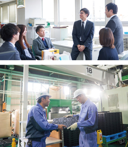 しかし、従来の樹脂製の製品は壊れやすく、特に寒冷地に弱いという弱点がありましたが、当社はそれを解決する製品を業界に先駆けて完成。工事現場の安全のための防護柵をはじめ、高速道路インターチェンジや駐車場の区分帯として使われています。