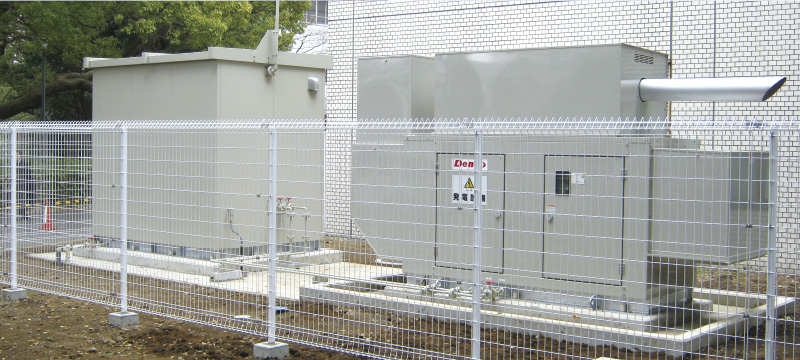 デンヨーのエンジン発電機は、台風・地震・火災などの災害時・病院の医療機器・ビルの排煙装置・オフィスや工場のコンピュータ・銀行のオンラインシステムなどの非常用電源としてさまざまな施設に導入されています。他の原動機と比較して熱効率が高く、燃料消費率が少なく経済的です。また、燃料は軽油やガソリンなどで容易に入手でき、国内シェアNo.1を誇っています。