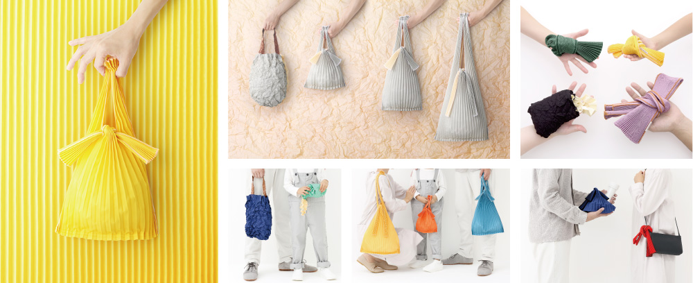 バッグ全体におしゃれなプリーツ加工を施すという独自のアイデアとデザインにより、優れた収納力と簡単に素早くコンパクトに折りたためる携帯性を両立するとともに、日本の伝統色からカラーバリエーションを設定しました。社会環境を踏まえたデザインコンセプトに基づき、JETRO(日本貿易振興機構)の選定を受けて平成20年1月にはパリで開かれたインテリアの国際見本市「MAISON&OBJET」への出展が叶い、これを機に欧米など海外のミュージアムショップなどでの取扱いが増えてきています。