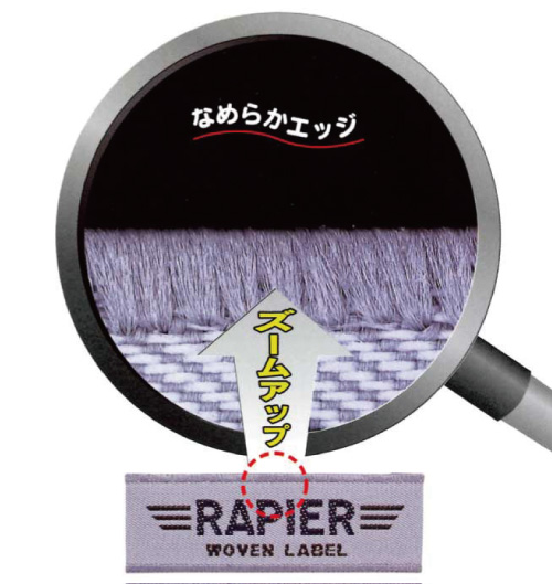 衣料品の襟の部分などに取り付けられ、ブランド名などを表示する織ネームは、細幅のテープに仕上げる際に熱を加えてカットするため、切断面となるエッジの部分ではポリエステル糸が溶けてガラス球状となってしまいます。それが肌を刺激して不快感を生んだり、他の着衣とこすれた場合にダメージを与える可能性がありました。