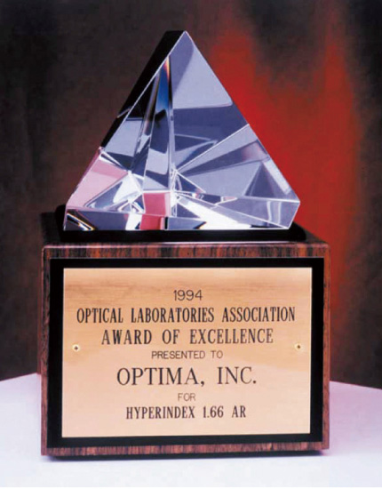 当社は、1987年に世界で初めて高屈折率の薄型レンズを製造し、また1994年にはさらに屈折率を高めた世界初の超薄型レンズを開発、そのレンズは日本メーカーとして初めて全米眼鏡業協会の最優秀レンズ賞を受賞しました。