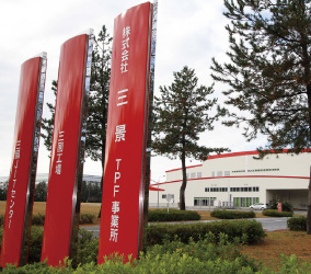 伊藤忠商事グループの一員として、アパレル業界の“ものづくり”をトータルでサポートできる。それが、私たち三景のビジネスです。国内最大規模の裏地生産を誇る染色工場を県内に2か所有し国内シェアの60%を占めています。三景の裏地でオリジナル商品第1号となったのが、#1818タフタ『染美人®』です。1988年、自社染色工場の設立とともに開発され、柔らかくてしなやかな風合いと発色性、落ち着いた光沢感が特徴のポリエステルタフタ製の裏地です。『染美人®』は現在も生産されており、これまでの総出荷量は41万km以上。つなぎ合わせると地球10周分、月までも届く長さになります。また、SDGs理念に沿って、環境配慮を意識した商品開発を行うと共に、太陽光発電やリサイクル活動にも積極的に取組む設備投資を継続的に行い、「環境にやさしい企業」への進化を目指しています。