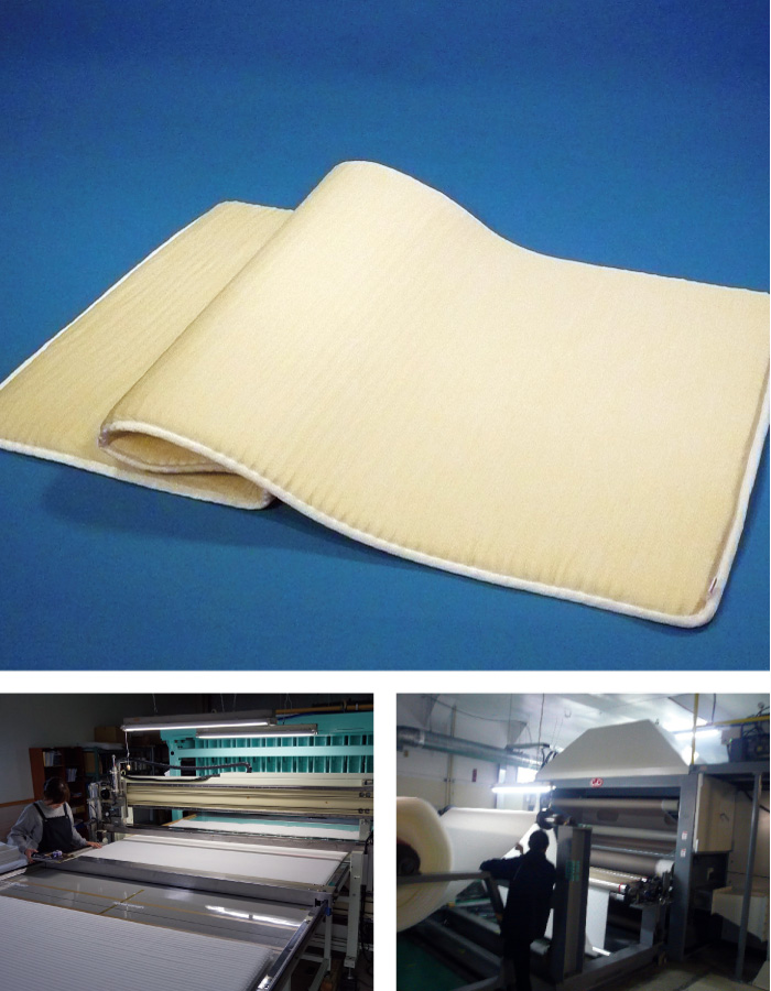 福井の伝統技術が生んだ織物によるクッション材です。ヘタリの少ない均一なクッション性能を生み出すために糸作りから縫製までを内製化しました。
