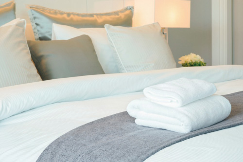 当社の「グリーンパルシリーズ」はこれらの問題を解決すべく、当社の界面科学で培った技術を駆使した特殊界面活性剤(特許取得)を配合し、特にポリエステル素材等の合成繊維に付着した油汚れに対して非常に高い洗浄力(除去力)を発揮するだけでなく、逆汚染(クスミ)の発生も防止しています。これらの技術により洗浄後の衣料(リネン品)を繰り返し使用できるため、廃棄ロスにも繋がっています。