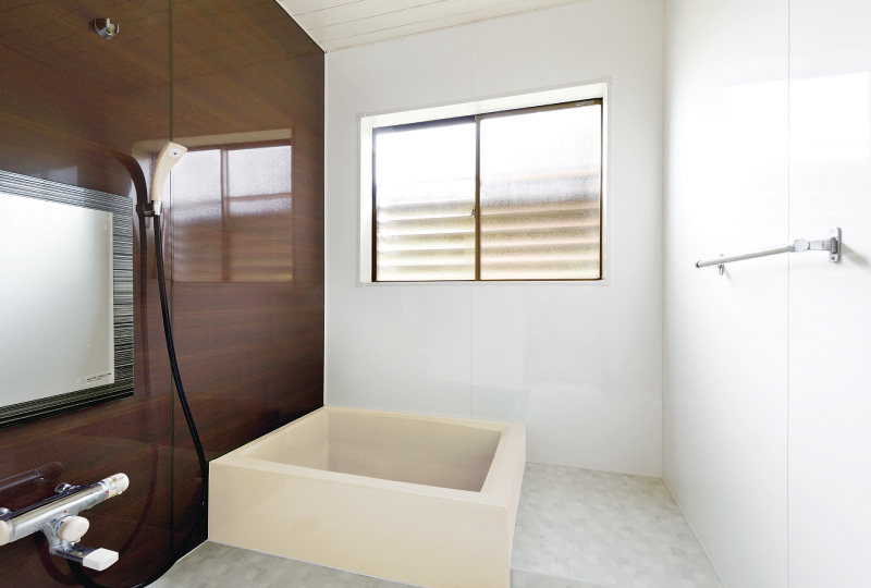 古くなった在来工法の浴室や、ユニットバスの浴室の壁を壊さず、上からアルパレージを貼ることで、簡単かつきれいにリフォームします。乾式(工場で製造した壁材などを現場で取り付ける工法)の断熱パネルでは国内シェアナンバーワンとなっています。