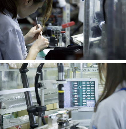 防犯セキュリティに用いられる赤外線センサの機能で重要なのは、誤報しないこと。設置場所の温度や湿気のほか、センサ精度を左右する「ノイズの影響を受けない」製品は、部品の選択、はんだ付けの間隔などを含む電気回路の設計および使用環境に応じた機能設計によって生み出され、精度の高い製造技術力によって支えられており、当社はその技術とノウハウを有しています。また、これらの技術とノウハウを活かし、LSI、FC、CSP/BGA、0201chipなどの高密度実装技術を様々な分野のEMS事業に展開しております。