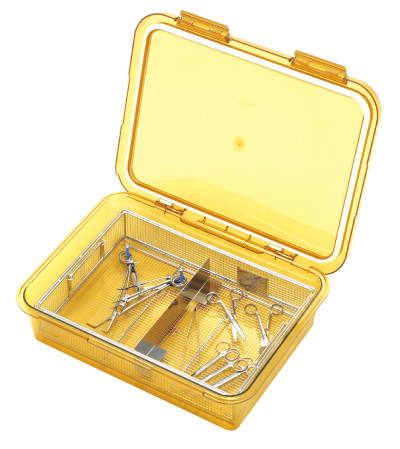 院内感染の防止が叫ばれる昨今、その対策製品「病棟・外来用滅菌物回収専用コンテナー」を開発。中身が見えて、軽く、耐熱、耐薬品性に優れるこの製品は、医療用キャビネットやカートと同じく当社独自の技術が大きく寄与し、多くのお客様に採用されています。